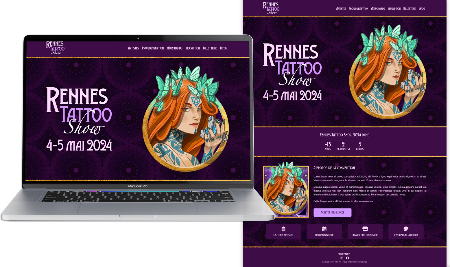- - Création complète du site web officiel de la convention de tatouage de Rennes 2024